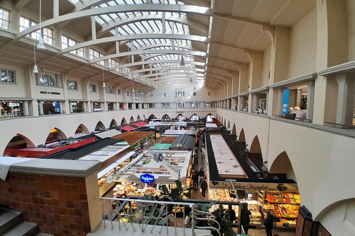 Dort erfuhren die Teilnehmenden zunächst einiges über die Geschichte der Stuttgarter Markthalle und die architektonischen Besonderheiten des Bauwerks. Dieses wurde nach den Plänen des Architekten Prof. Martin Elsässer gebaut und am 1. Januar 1914 eingeweiht. Der Jugendstilbau mit einer Konstruktion aus Stahlbetonträgern und einer von einem Glasdach überspannten Halle steht inzwischen unter Denkmalschutz. Die Markthalle ist eine gern besuchte Einkaufsstätte mit 33 verschiedenen Verkaufsständen. Die Halle umfasst rund 5.000 Quadratmeter Verkaufsfläche und bietet bei einer Länge von 60 Metern und einer Breite von 25 Metern zahlreichen Dienstleister*innen und Händler*innen Raum.