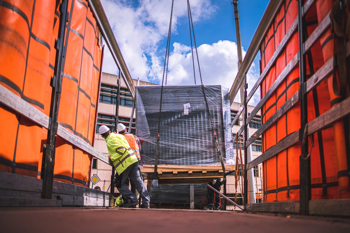 Ankunft und Montage des thermischen Windkanals im Neubau