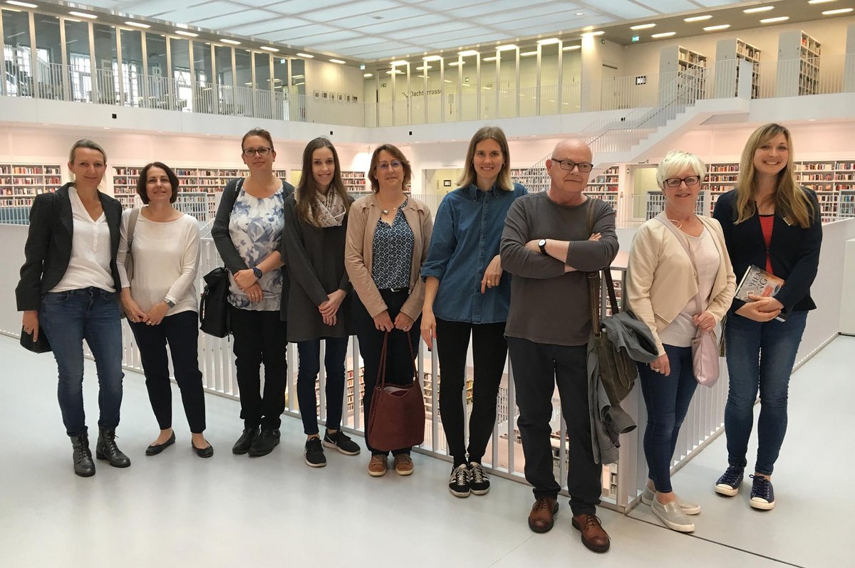 Im Rahmen einer Discussion Group hatten die Studierenden anschließend die Möglichkeit, sich über ein Praktikum bei den beiden Organisationen zu informieren und in Erfahrung zu bringen, welche Anforderungen dabei gestellt werden. Boyle und Hendry trafen dabei auch auf ehemalige Praktikantinnen und Praktikanten, zu deren originären Praxiseinrichtungen sie eingeladen waren. Eine Führung im Bereich Kinder- und Jugendliteratur in der Stadtbibliothek mit dem Team des Auslandsamts der DHBW Stuttgart rundete den Besuch ab.