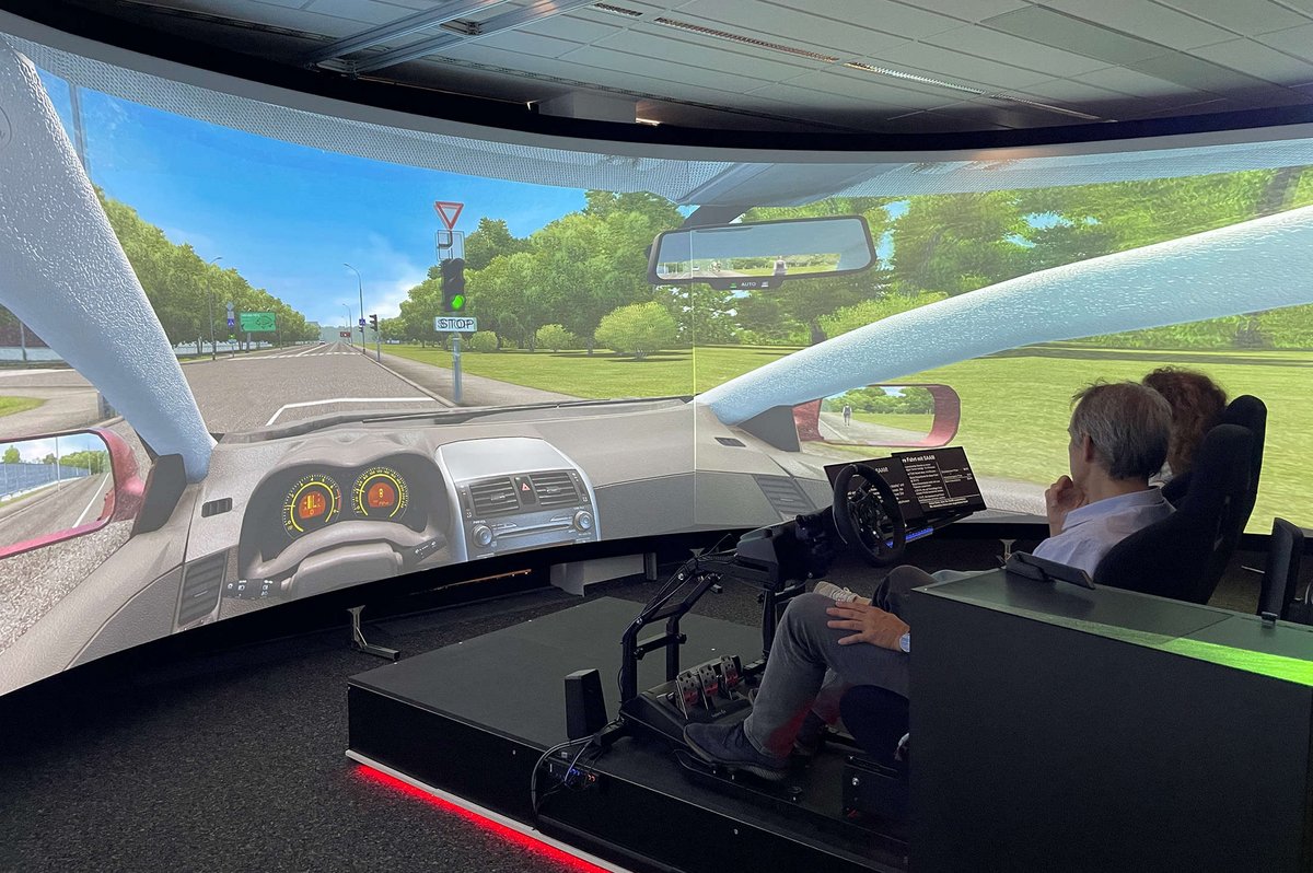 Das CITAI Mobility Lab ist ein 100 Quadratmeter großes Simulationslabor, das sich auf die Forschung und Entwicklung von KI-gesteuerten Lösungen für autonome Mobilität fokussiert. Ausgestattet mit einem gebogenen 180-Grad-Bildschirm, bietet es eine immersive Umgebung für Simulationen.