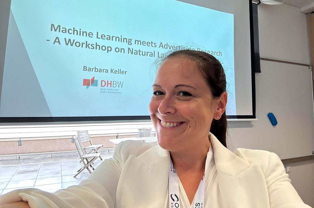 Prof. Dr. Barbara Keller vom Studienzentrum BWL-Dienstleistungsmanagement der DHBW Stuttgart zeigte in ihrem Workshop „Machine Learning meets Advertising Research: A Workshop into Natural Language Processing“, wie maschinelle Themenerkennung aus Beiträgen von Konsument*innen im Social Media Umfeld erfolgen kann.