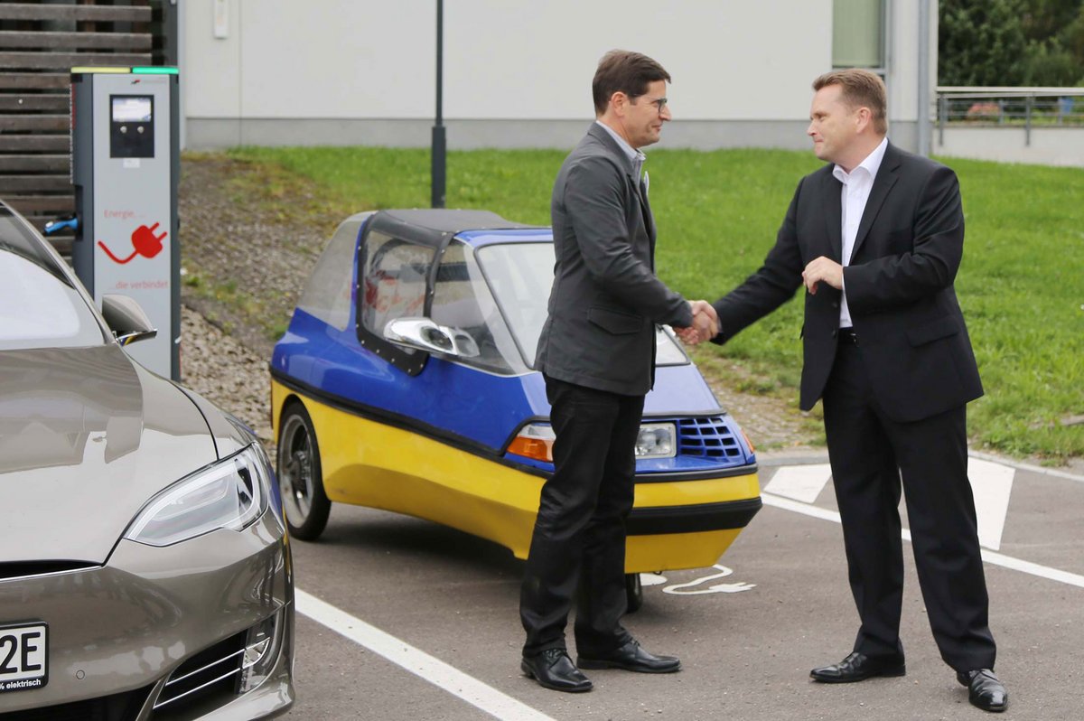 „Energie, die verbindet“ – unter diesem Motto standen nicht zuletzt auch die Grußworte des Horber Bürgermeisters Ralph Zimmermann und des Campusleiters Hartmuth Diery. Zusammen stellten sie am Samstag die neue Elektroladesäule der Öffentlichkeit vor. Energie die verbindet ist für Hartmuth Diery ein Symbol für die Verbindung zwischen Theorie und Praxis, für die Zusammenarbeit zwischen Hochschule und der Parkraumbewirtschaftung Baden-Württemberg mbH als Betreiber der Ladesäule und für die enge Verbindung zwischen der Stadt Horb und der Hochschule. „Besonders wichtig ist mir aber auch die Verbindung zwischen der Hochschule und den Bürgern, denn diesen steht die Tanksäule zukünftig zur Verfügung", so Diery. Vor einem Jahr stand die Hochschule aus finanziellen Gründen nämlich vor der Entscheidung, eine Elektrotanksäule entweder nur für die Campus-interne Versorgung - also für die Theorie – anzuschaffen, oder diese als nun inzwischen vierte E-Tankstelle in Horb der Öffentlichkeit zugänglich zu machen. „Diese Entscheidung ist uns nicht schwer gefallen“, sagt Diery. „Wir möchten damit ein Zeichen gegenüber der Stadt Horb als energieneutrale Kommune setzen“. Bürgermeister Zimmermann freut sich über den engen Schulterschluss mit dem Campus Horb als wissenschaftliche Einrichtung vor Ort. „Ich finde es gut“, so Zimmermann, „dass hier die Elektromobilität auf wissenschaftlicher Basis vorangetrieben wird, aber gleichzeitig auch an der Verbesserung von Verbrennungsmotoren gearbeitet wird.“ Er bedankte sich ausdrücklich bei allen, die sich mit diesen Themen auseinandersetzen, denn, so sagt er „es ist noch ein weiter Weg, den wir vor uns haben“.