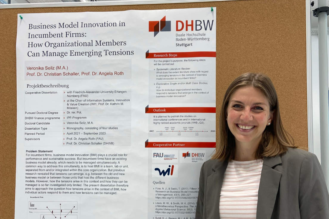 Damit ist sie eine von mehreren wissenschaftlichen Mitarbeitenden der DHBW, die derzeit kooperativ promovieren. Die Promotion erfolgt im Rahmen des „Innovationsprogramms Forschung“ (IPF), das kooperative Promotionsprojekte fördert und damit zur Stärkung von Innovation und Forschung an der DHBW beiträgt.