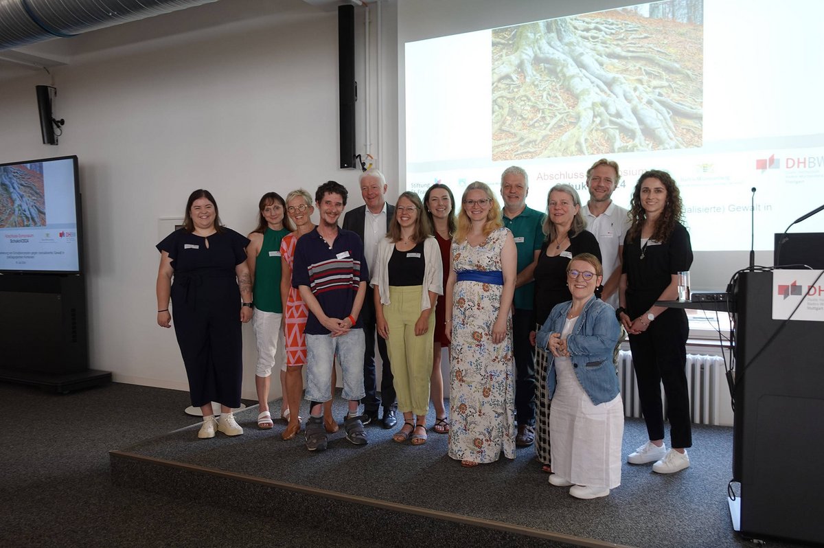 Die Landesbehindertenbeauftragte Simone Fischer und Prof.in Dr. Beate Sieger-Hanus, Rektorin der DHBW Stuttgart, hielten Grußworte zur Eröffnung der Veranstaltung. Moderiert wurde der Tag von Prof.in Dr. Melanie Werner (DHBW Stuttgart) und Melanie Pribil (Landeskoordinierungsstelle spezialisierter Fachberatungsstellen bei sexualisierter Gewalt in Kindheit und Jugend).