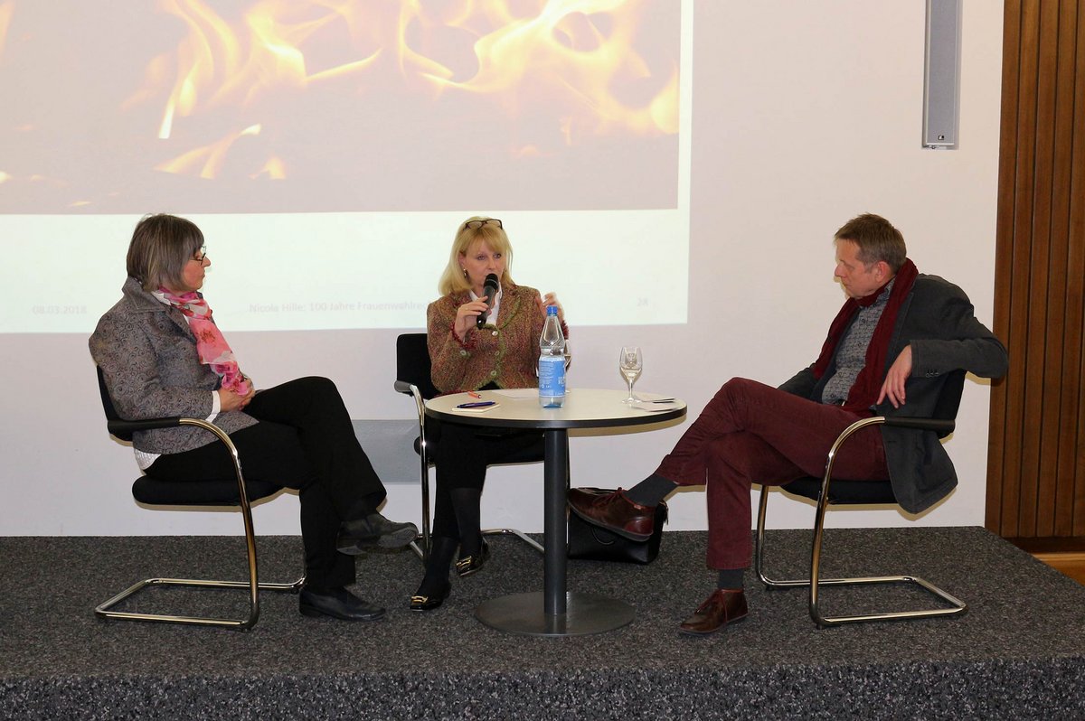 Nicola Hille, Geschäftsführerin von Gender Consulting der Universität Stuttgart, entfaltete ein geschichtliches Panorama der Auseinandersetzungen von der Aufklärung bis zu den letzten Bemühungen um das Frauenwahlrecht in der Schweiz. Im Podiumsgespräch erwies sich Karin Maag, derzeitige gesundheitspolitische Sprecherin der CDU/CSU-Fraktion im Deutschen Bundestag, als engagierte Streiterin für die Frauen. Über die Parteien hinweg sei die Gleichberechtigung für Frauen auch in der Politik noch keine Selbstverständlichkeit. Hier gelte es, ganz pragmatisch Mitstreiterinnen und Mitstreiter zu gewinnen.