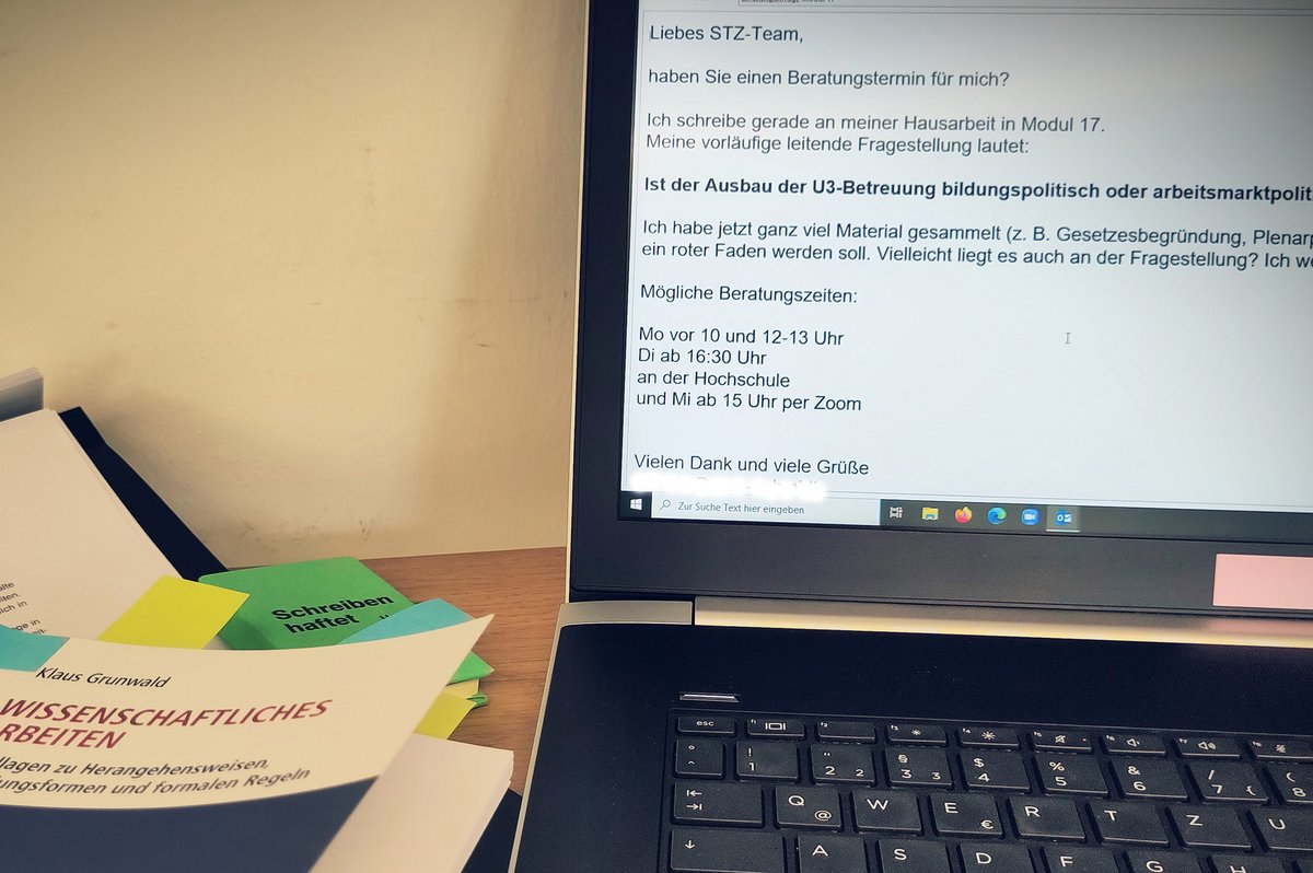 Neben offenen Angeboten, Workshops und Veranstaltungen ist das Herzstück des Angebots eine persönliche, individuelle Beratung per E-Mail, via Zoom oder im persönlichen Gespräch an der Hochschule. Diese bietet einen Ort für Studierende, ihre Gedanken zu ordnen, ihre eigene Stimme im Text zu finden und Sicherheit in der eigenen Vorgehensweise zu gewinnen, um die Herausforderung des Schreibens akademischer Texte zu meistern.