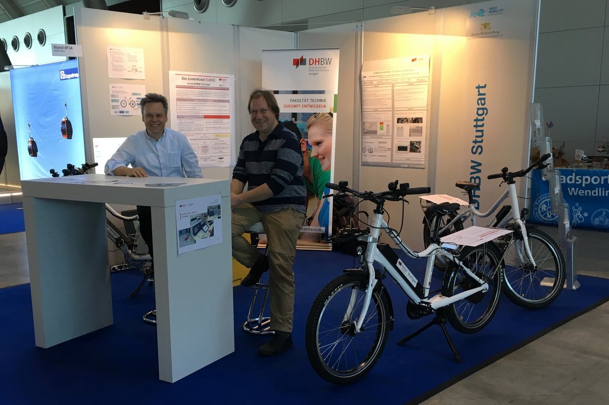 Besonders die Neuerungen bei Bedienkonzepten und beim Energiemanagement stießen dabei auf großes Interesse. Zur Demonstration am Stand dienten drei Pedelecs, die mit Tempomatfunktion sowie stufenlos regulierbarer und daher materialschonender Bremse ausgestattet waren. Prof. Dr. Uwe Zimmermann zog eine positive Bilanz nach den Tagen auf der Landesmesse: „Die Atmosphäre war von schwäbischem Erfindergeist getragen. Unser Auftritt kam durchweg gut an, wir führten interessante Gespräche mit Fahrradherstellern, fahrradbegeisterten, gut informierten Privatleuten sowie anderen Hochschulen.“