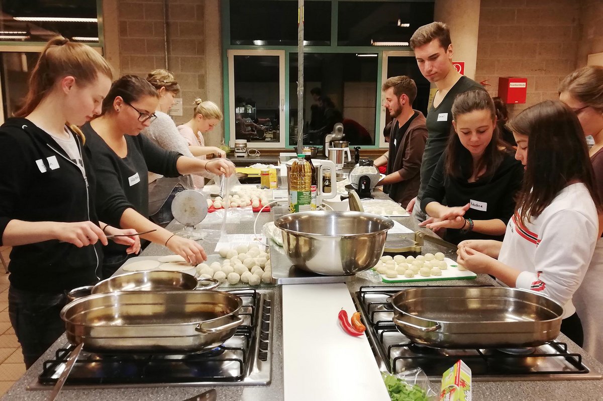 In Teams wurden verschiedene Speisen zubereitet: Es gab typisch mexikanische Gerichte wie Guacamole, Salsa mexicana, selbstgemachte Tortillas aus Weizen und aus Mais, Quesadillas und Fajitas de res sowie Fajitas de pollo (Fajitas mit Rind- bzw. Hühnerfleisch). „Mit der Musik, der Dekoration und dem zubereiteten Essen fühlt man sich, als wäre man gerade in Mexiko“, so eine begeisterte Studentin.