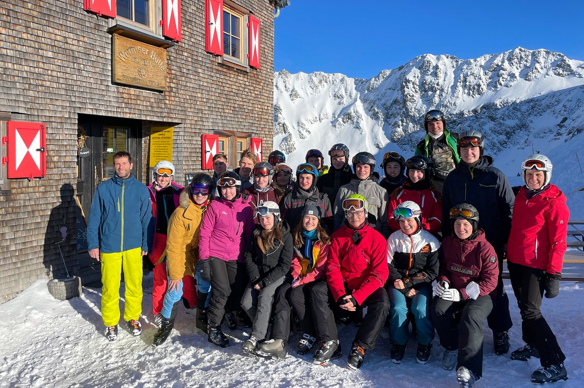 Am Samstag lockten beste Pistenbedingungen alle Teilnehmenden früh aus den Betten. Nach einem sonnigen Tag im Skigebiet wurden alle mit einem spektakulären Sonnenuntergang auf der Wormser Hütte belohnt. Nachdem es in der Nacht von Samstag auf Sonntag geschneit hatte, startete der Sonntag mit schlechten Sichtverhältnissen. Doch im Laufe des Vormittags zeigte sich das Wetter dann von seiner besten Seite und bescherte den Skifahrer*innen einen wundervollen letzten Skitag. Mit Gepäck ging es dann über 500 Höhenmeter wieder hinab ins Tal und auf die Heimreise.