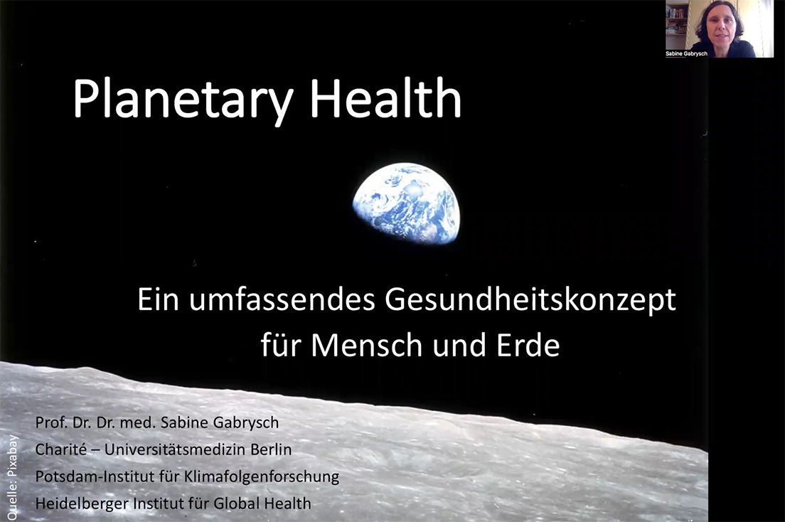 Die Studierenden der Angewandten Hebammenwissenschaft des berufsintegrierenden Studiengangs und der ausbildungsintegrierenden Studiengänge bekamen zunächst eine Einführung zu Planetary Health von Prof. Dr. Dr. Sabine Gabrysch, die den ersten Lehrstuhl für Klimawandel und Gesundheit an der Charité Berlin und dem Potsdam – Institut für Klimafolgenforschung (PIK) innehat. Anhand aktueller und zugleich erschreckender Zahlen wurde die Aktualität des Klimawandels und dessen Auswirkung auf die Erde, die planetare Gesundheit und vor allem auf die Gesundheit der Menschen dargestellt.