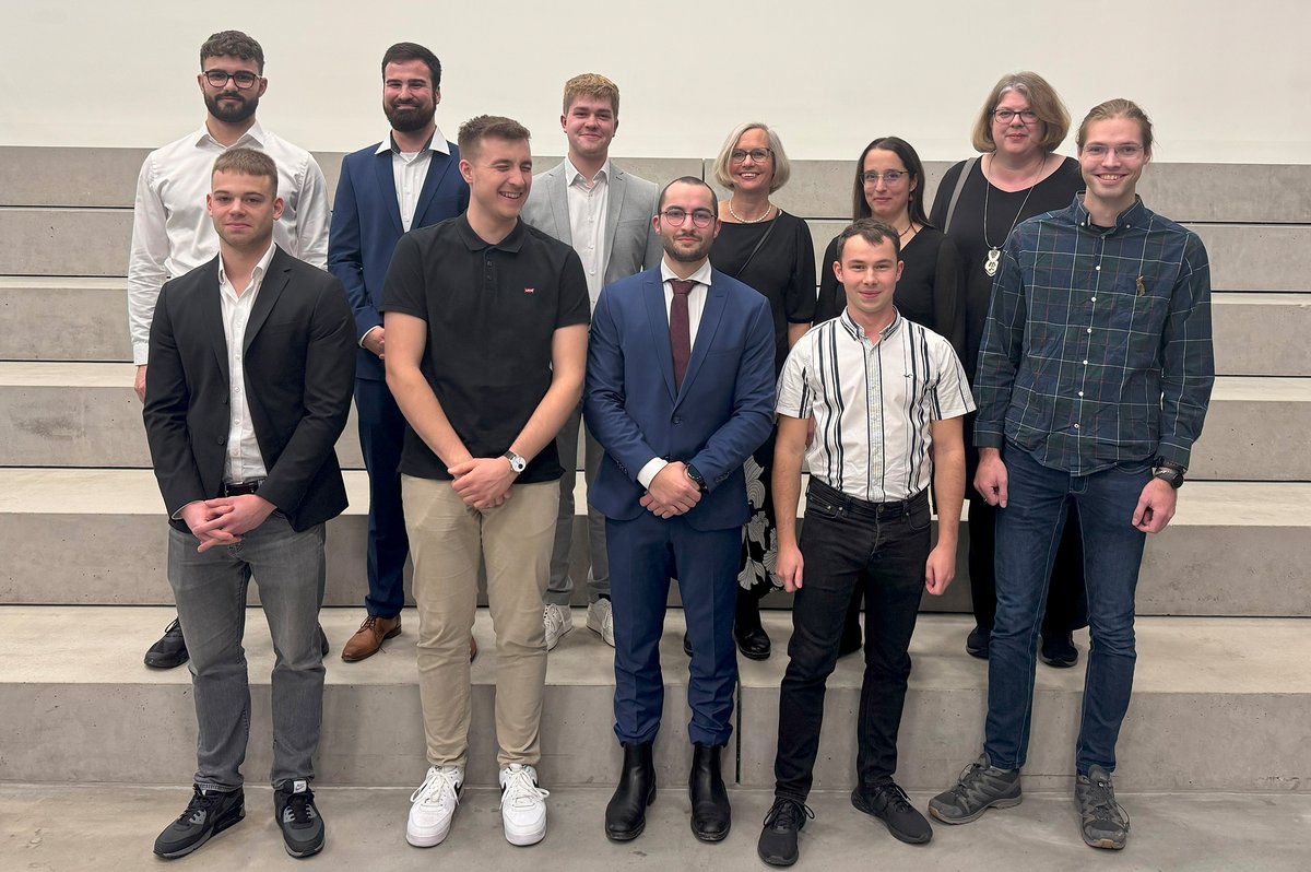 Studiengangsleiterin Prof. Anke Gärtner-Niemann und Prof. Dr. Katharina Nerz erinnerten an die Besonderheiten dieses ersten Jahrgangs: „Sie waren echte Pioniere. Sie sind die ersten Studierenden dieses neuen Studiengangs. Sie waren der erste Jahrgang, der während der Pandemie wieder in Präsenz startete, Sie waren die Ersten im Neubau. Es gab für Sie keine ausgetretenen Pfade, was gleichermaßen Fluch und Segen war.“ Auch die Vertreterin der kooperierenden Unternehmen, Susan Michelchen (Siemens AG), lobte die Leistung der Absolventen. Sie beschrieb das duale Studium als harmonisches Zusammenspiel von Hochschule, Unternehmen und Studierenden. „Sie kamen als wissenshungrige Raupen und verlassen uns nun als wunderschöne Schmetterlinge. Damals wusste keiner, wie erfolgreich dieser Studiengang werden würde – heute ist klar: Es hat sich gelohnt.“