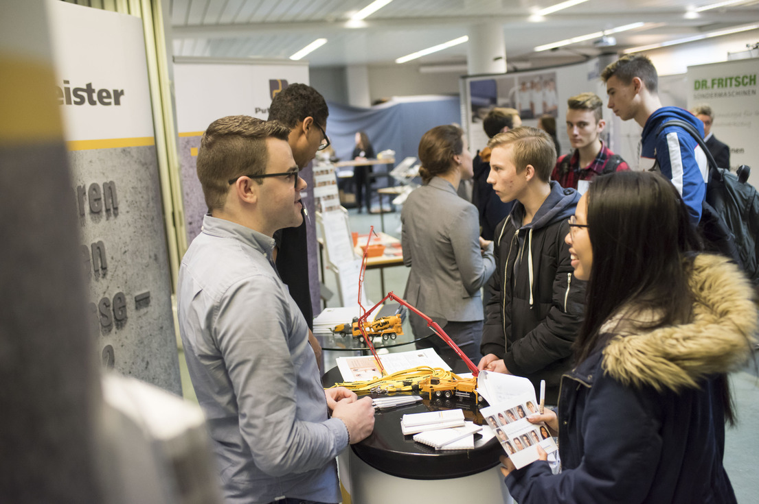 Highlight war auch dieses Jahr die große Firmenkontaktmesse mit rund 200 Dualen Partnern. Hier hatten Studieninteressierte die Gelegenheit, Kontakte zu knüpfen, sich über das duale Studium zu informieren oder direkt ihre Bewerbungsunterlagen abzugeben. Die Professorinnen und Professoren präsentierten ihre Studiengänge in kurzen Vorträgen und zahlreiche Angebote der Forschungszentren luden zum Mitmachen und Ausprobieren ein.