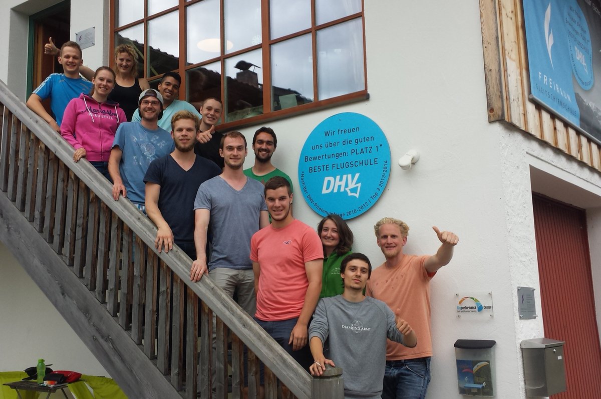 Das Highlight erwartete die Studierenden am letzten Schulungstag: Am Morgen gab der Fluglehrer bekannt, dass das Team so gute Fortschritte mache, um von der zweiten Stufe am Übungshang fliegen zu dürfen. So wurden schnell Flughöhen zwischen 90 und 100 Metern erreicht und bereits ein Flug reichte aus, um sich für die Teilnahme für den nächsten Schein, die Höhenschulung, zu qualifizieren. Fast das gesamte Team des Grundkurses möchte sich zur Höhenschulung anmelden und damit einen weiteren Schritt in Richtung des eigenständigen Gleitschirmfliegens machen.