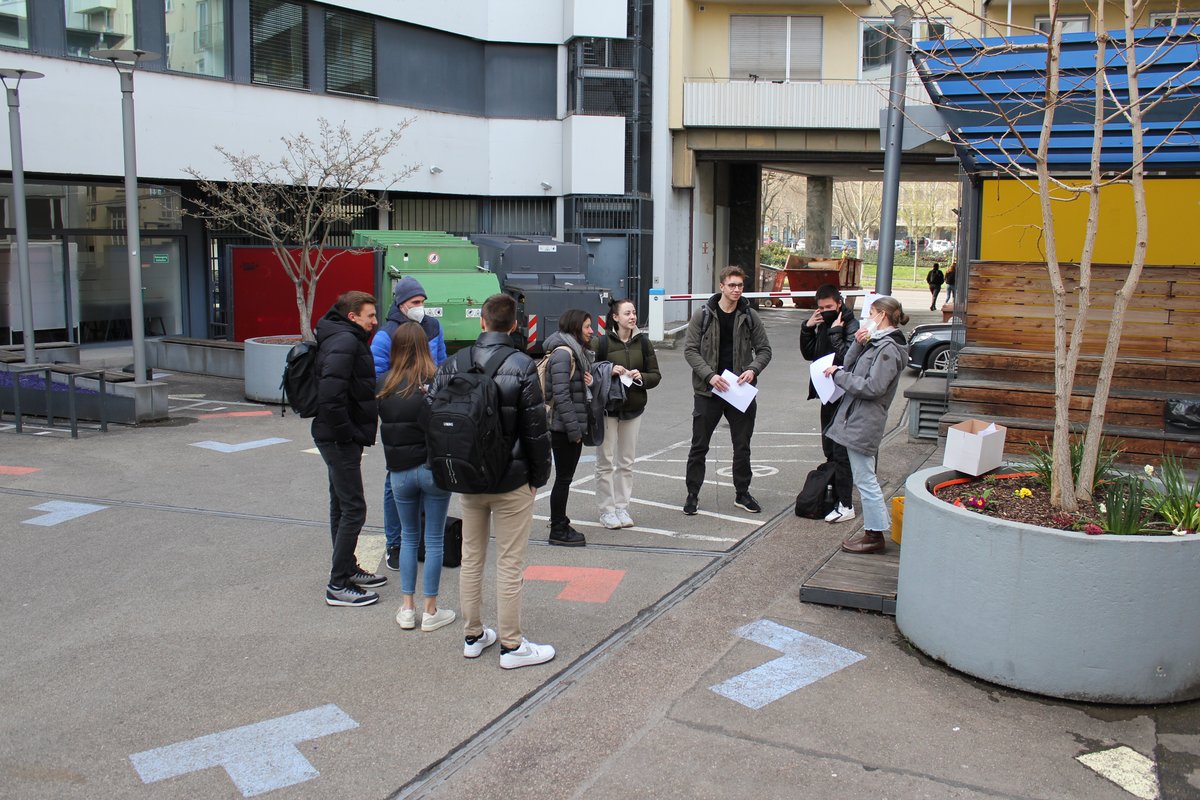 Um den Wettkampfgedanken zu erhöhen und die Kurse zu stärken, waren die Teams gefordert, als Gruppe vom Start an während der Aufgaben zusammen zu bleiben und diese gemeinsam zu lösen. Zudem waren die Fortbewegungsmöglichkeiten eingeschränkt auf öffentliche Verkehrsmittel oder die eigenen Füße. Am Ende der eineinhalb Stunden luden die Teams ihre Lösungen im Rahmen von Fotos und Videos der jeweiligen Stationen in ihren Moodle-Kursräumen hoch. Das ausgefüllte Aufgabenblatt gaben sie vor Ort an das Organisationsteam ab. Nach eineinhalb Stunden winkten Süßigkeiten als Belohnung. Innerhalb des Kurses und im Studienzentrum sollen die Teams der Gewinner*innen noch mit Urkunden gekürt werden.