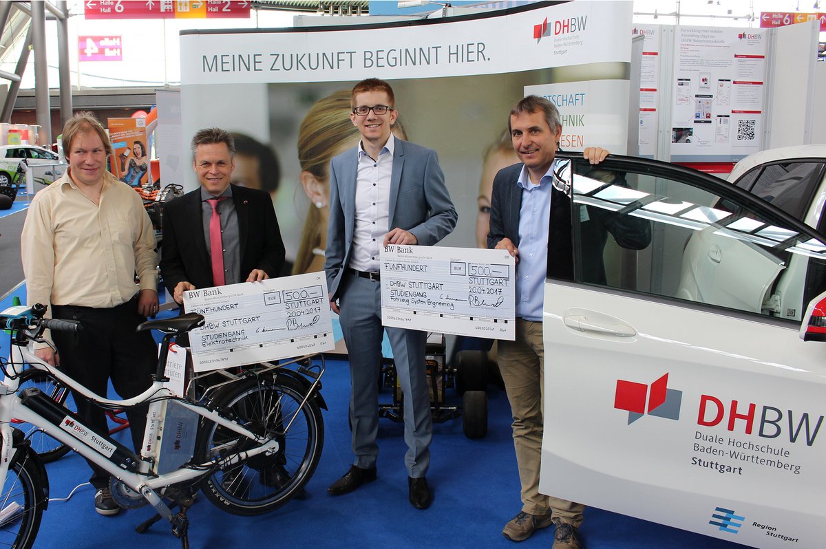 Beide Preise sind mit jeweils 500 Euro dotiert und wurden den Preisträgern von Verkehrsminister Winfried Hermann am Messestand der DHBW Stuttgart überreicht.