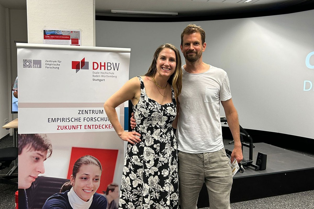 Der Kontakt beider Hochschulen wurde ursprünglich durch Prof. Dr. Marc Kuhn, Leiter des Zentrums für Empirische Forschung (ZEF) der DHBW Stuttgart, initiiert und somit war ein Besuch dort ein Muss. Kuhn und Sinu Thirukketheeswaran, wissenschaftlicher Mitarbeiter am ZEF, stellten die Aufgaben und Möglichkeiten des Zentrums vor. Besonderes Interesse galt dem neuen CITAI Smart-Living Lab, das aktuell Grundlage für Forschung von Akzeptanz von Künstlicher Intelligenz (KI) in verschiedenen Bereichen des häuslichen Umfelds ist. Auch wurden aktuelle Forschungsprojekte mit Studierenden aus der Ukraine vorgestellt und das kürzlich eröffnete Smart-Mobility Lab besucht, in welchem beispielsweise die Akzeptanz von durch KI vorgeschlagenen Mitfahrenden in Taxis durch Thiruketheeswaran und Laboringenieur Gabriel Yuras Zuniga untersucht wird.
