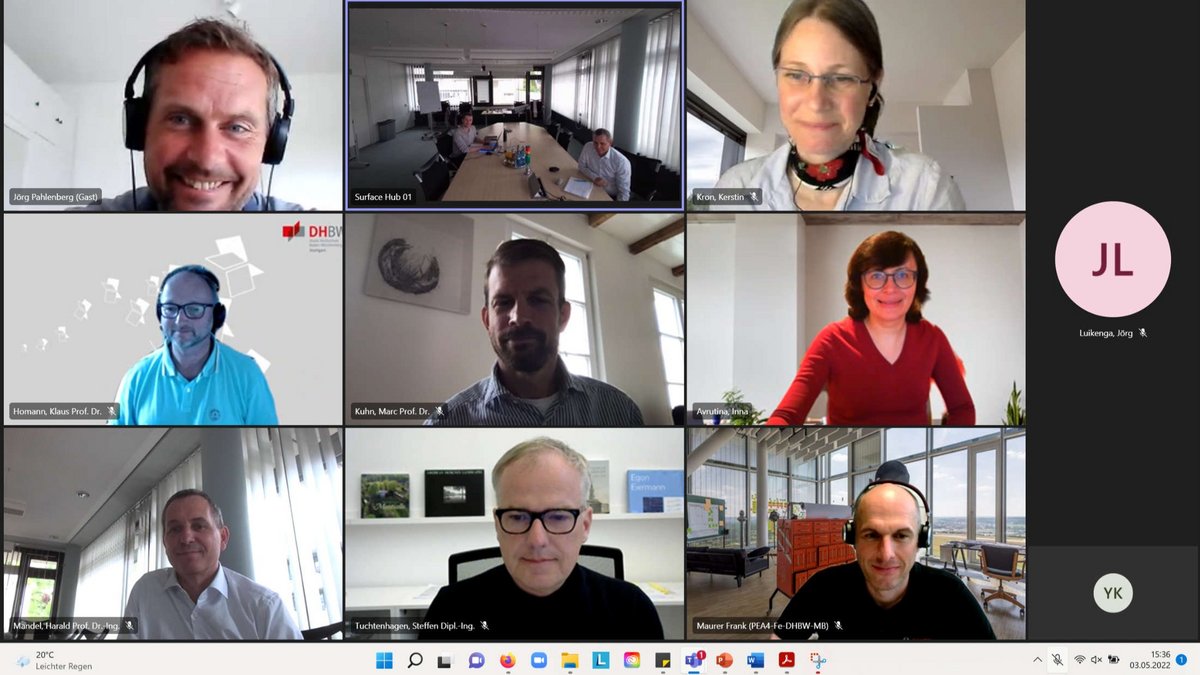 Prof. Dr.-Ing. Harald Mandel, Prorektor für Nachhaltigkeit sowie Initiator und Leiter des Arbeitskreises, und Rektor Prof. Dr. Joachim Weber begrüßten die Beteiligten. In den darauffolgenden anderthalb Stunden wurde über aktuelle Projekte zum Thema Nachhaltigkeit an der DHBW Stuttgart, die Nachhaltigkeitsziele der DHBW, das Green Office (GO) an der DHBW Stuttgart, das Thema Nachhaltigkeit in Bezug auf Bauten und Technik sowie eine bessere Zusammenarbeit mit Dualen Partnern zum Thema Nachhaltigkeit gesprochen. Der lebhafte Austausch zwischen den zehn Teilnehmenden, darunter z. B. Jörg Pahlenberg (verantwortlich für Sustainable Development im Präsidium der DHBW), fand dabei online statt.