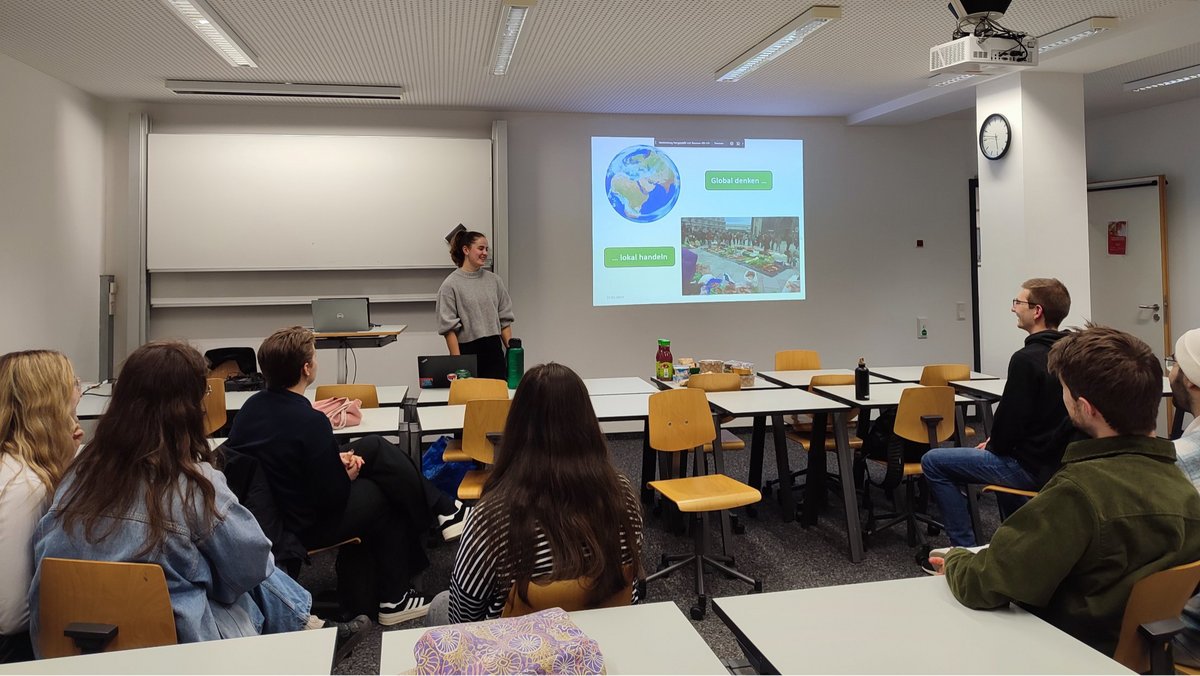 Am 27. Februar 2024 trafen sich Studierende und Interessierte der DHBW Stuttgart bei einem Vortrag zum Thema Foodsharing an der Fakultät Sozialwesen. Alicia Böhm von der Initiative Foodsharing sprach über die Bedeutung und die Möglichkeiten des Foodsharing in Bezug auf Lebensmittelverschwendung und Nachhaltigkeit. Die Veranstaltung wurde organisiert von der Studierendenvertretung (StuV) sowie vom Green Office der DHBW Stuttgart und hatte das Ziel, den Teilnehmenden einen umfassenden Einblick in die Idee des Foodsharing zu geben und sie für die Herausforderungen im Bereich der Lebensmittelverschwendung zu sensibilisieren. Laut der Umweltschutzorganisation WWF werden aktuell ca. 40 Prozent der weltweit produzierten Lebensmittel nicht gegessen und als Müll entsorgt.