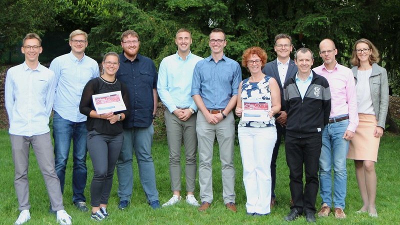 Simon Hohnwald, Jan Ruf, Sina Arendt, Benjamin Thiefes, Marvin Winnes, Martin Dangelmayer, Prof. Dr. Vera Döring, Prof. Dr. Steffen Arnold, Prof. Dr. Michael Hauser, Prof. Dr. Markus Schoor, Marcella Rosenberger (v.li.n.re.)