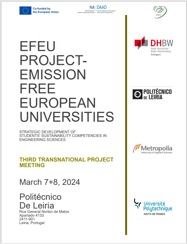 From 7th to 8th March 2024, the Emission Free European Universities Team will be in Leiria, Portugal, to participate in the third transnational project meeting (TPM).