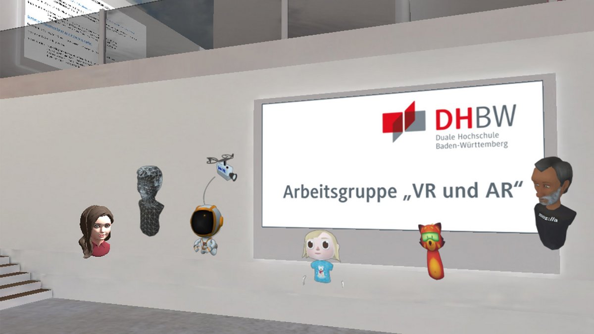 Die DHBW-weite Arbeitsgruppe „VR und AR“ des an der DHBW Stuttgart angesiedelten Zentrums für Interdisziplinäre Lehre und Forschung (INDIS) traf sich Ende Juni in der SocialVR-Welt Mozilla Hubs, um dort ihr drittes Meeting zu den Themen Ethik und Hygiene bei virtueller (VR) und augmentierter Realität (AR) abzuhalten. Die Arbeitsgruppe gründete sich im November 2020 unter der Leitung von Judit Klein-Wiele und Prof. Dr.-Ing. Harald Mandel von der DHBW Stuttgart sowie Jürgen Bluhm und Prof. Dr. Andrea Honal von der DHBW Mannheim und ist seit Kurzem nun Bestandteil des INDIS.