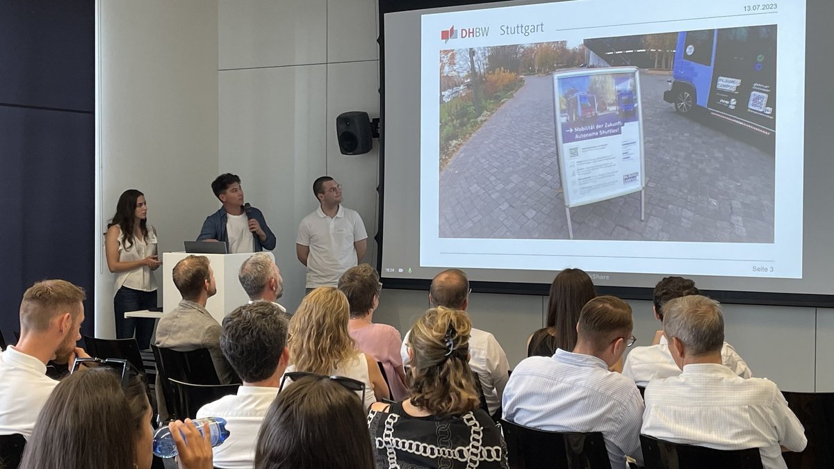 In einer User-Experience-Studie untersuchten Studierende aus dem Studiengang BWL-Industrie: Industrielles Servicemanagement der DHBW Stuttgart die Einstellung von Konsument*innen zum automatisierten Fahren. Die Präsentation der finalen Ergebnisse fand am 22. Juni 2017 vor hochrangigen Gästen aus der Automobilbranche sowie der interessierten Öffentlichkeit statt.