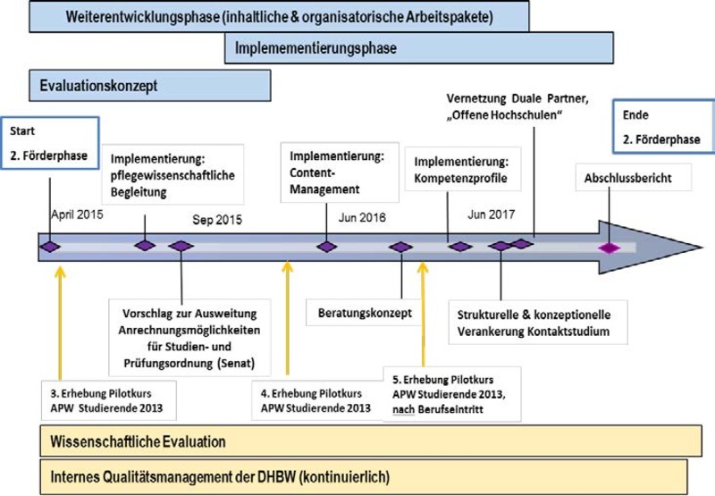 Ziele sind die Weiterentwicklung und nachhaltige, systematische Implementierung und Integration der innovativen Bildungsangebote in den berufsbegleitenden/dualen Studiengang „Angewandte Pflegewissenschaft“ und das berufsbegleitende Kontaktstudium.
