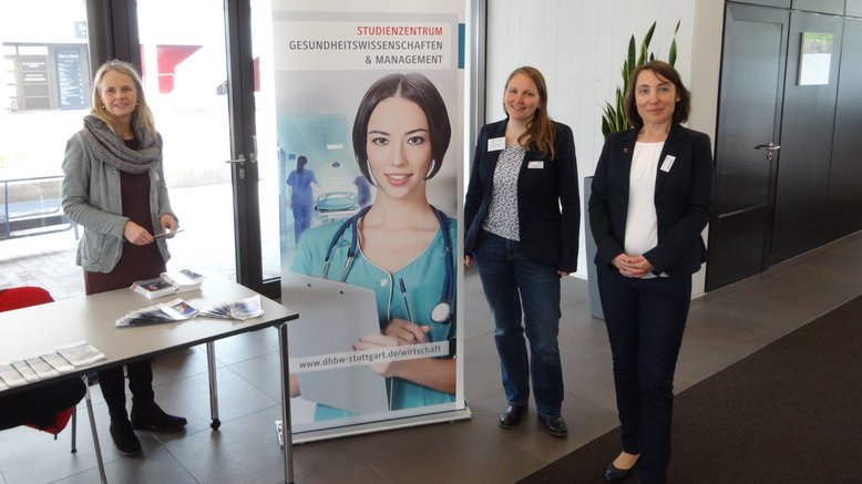 Am 9. Mai 2017 fand in Stuttgart der Landespflegetag statt. Pflegende aus der direkten Patientenversorgung, Führungs- und Lehrkräfte aus ganz Baden-Württemberg waren der Einladung des Deutschen Berufsverbandes für Krankenpflege (DBfK) gefolgt. Das Programm bot Vorträge und Fachdiskussionen rund um die Themenkomplexe "Ökonomisierung in der Pflege" und "Patientenversorgung neu denken". Am Stand des Studienzentrums für Gesundheitswissenschaften und Management der DHBW Stuttgart wurden in den Pausen angeregte Gespräche zur Akademisierung von Pflegekräften geführt und Interessierte über die Studienangebote Angewandte Gesundheitswissenschaften für Pflege sowie Angewandte Pflegewissenschaft informiert. Darüber hinaus konnte der Kontakt des Studienzentrums mit dualen Partnerunternehmen intensiviert und zu potenziellen Kooperationspartnern angebahnt werden.