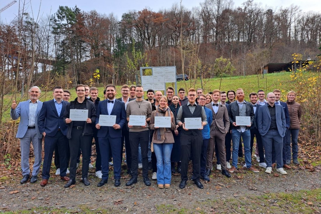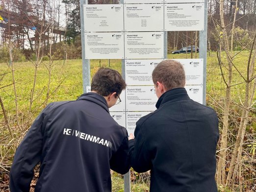 Die Baumpflanzaktion hat sich seit ihrer Einführung im Jahr 2022 zu einem festen Bestandteil der Abschlussfeierlichkeiten am Standort entwickelt. Initiiert wurde sie von Prof. Dr. Ulf Müller im Zuge eines Ideenwettbewerbs zum Thema Nachhaltigkeit. Seitdem wächst der Alumni-Wald kontinuierlich weiter: Jede Abschlussgruppe pflanzt eigene Obstbäume, die mit Schildern gekennzeichnet sind und so dauerhaft auf die jeweiligen Jahrgänge verweisen.