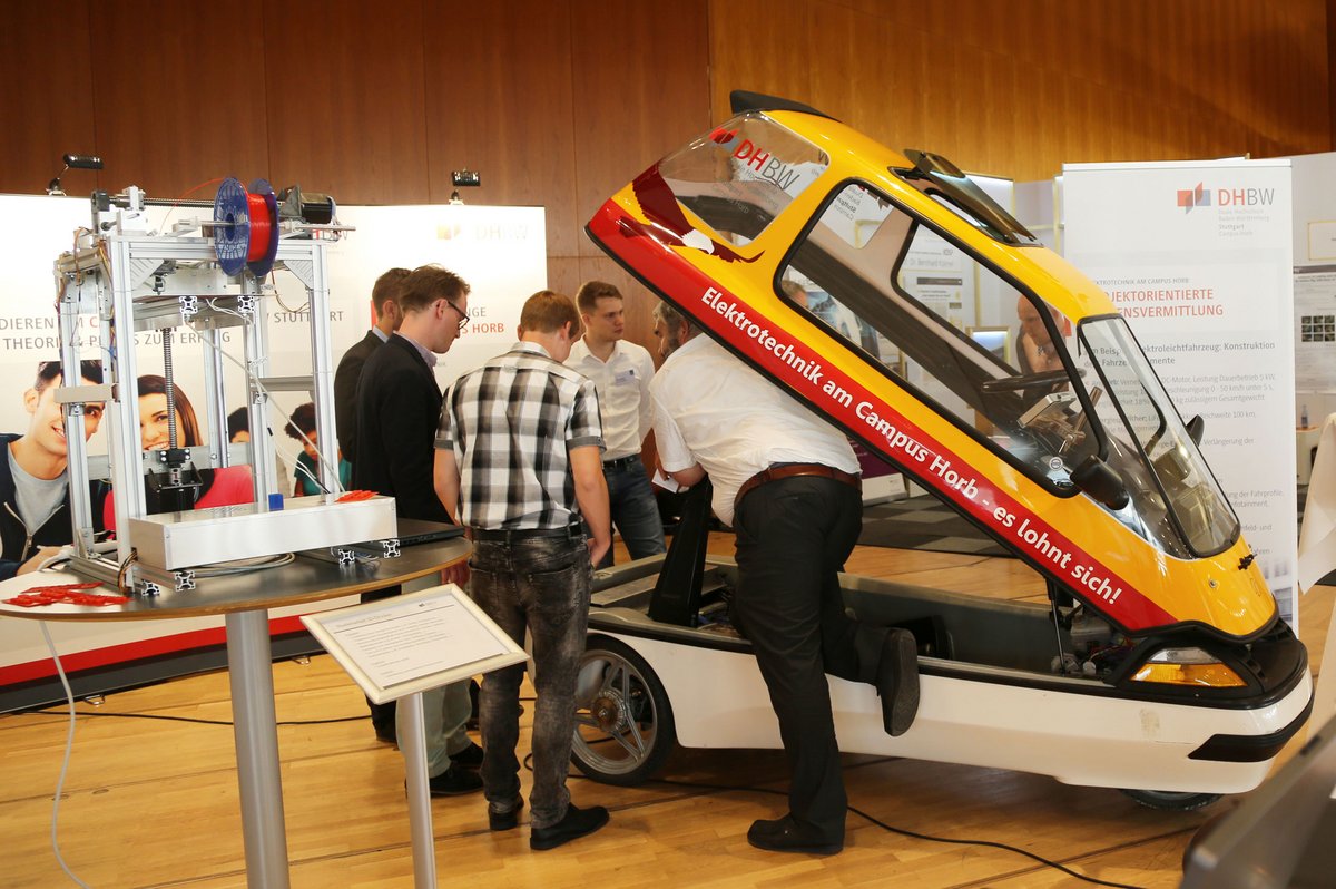 Unter den Überschriften „projektorientierte Wissensvermittlung“ und „Automation – Weg in die Zukunft“ zeigte der Studiengang Elektrotechnik didaktische Konzepte auf, wie Studierende auf ihren Beitrag zur „smarten Welt der Zukunft“ vorbereitet werden. Ein Elektroleichtfahrzeug und ein Mini-Segway sowie ein von Studierenden der Mechatronik entwickelter 3D-Drucker vermittelten Besucherinnen und Besucher ein Bild davon, wie diese didaktischen Ansätze im Hochschulbetrieb umgesetzt werden und welche Ergebnisse daraus entstehen.