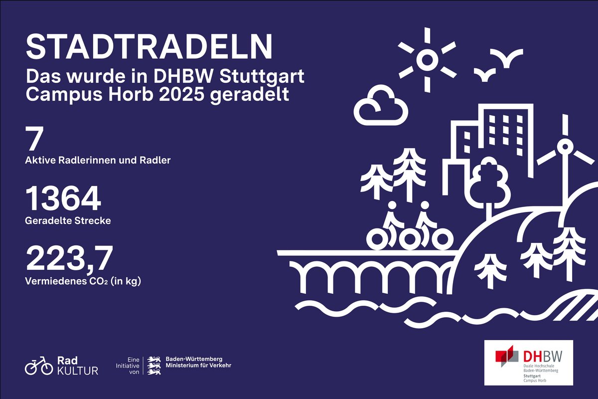 Mit der Teilnahme am STADTRADELN setzt die DHBW Stuttgart – Campus Horb ein sichtbares Zeichen: für Klimaschutz, gesünderen Alltag und ein starkes Miteinander. Wir freuen uns, auch im kommenden Jahr wieder kräftig in die Pedale zu treten – gemeinsam fürs Klima, für Gesundheit und Teamgeist.