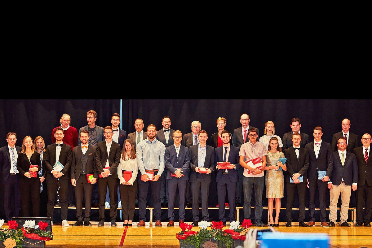 Feierlich umrahmt von der Band „Overall“ wurden die Zeugnisse an die Absolventinnen und Absolventen des Jahrgangs 2016 übergeben. Mit der Verleihung der Buchpreise an die Kursbesten und der Würdigung deren Partnerunternehmen endete die Bachelorfeier 2019 und entließ damit eine neue Generation an Fach- und Führungskräften in den Beruf.