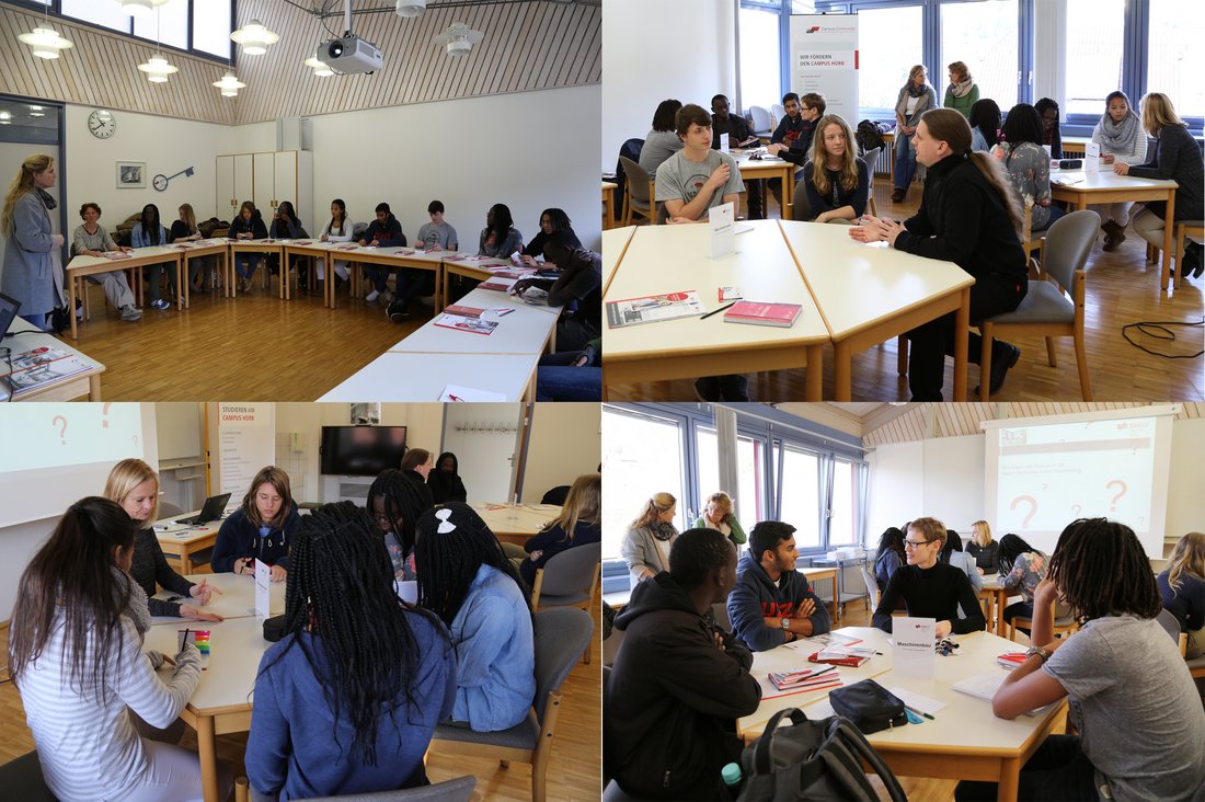 Zum Abschluss hatten die Schülerinnen und Schüler die Möglichkeit, in kleinen Gruppen direkt mit Professoren ins Gespräch zu kommen. Prof. Antje Katona (Maschinenbau), Prof. Katja Stamer (Wirtschaftsingenieurwesen) und Prof. Burkhard Ulrich (Mechatronik) beantworteten dabei ausführlich die Fragen der elf Studieninteressierten.