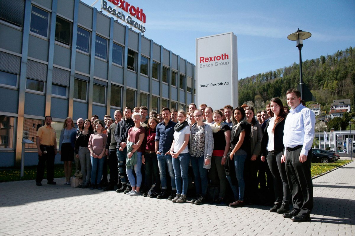 Die erste Exkursion führte die Studierenden nach Horb zur Bosch Rexroth AG. Ziel dieser Standortbesichtigung war es, die aktuellen Produktionsstrukturen für Industrieprodukte am Beispiel des Pumpenbaus kennenzulernen. Ausbildungsleiterin Carolin Schwenk begrüßte die Studierenden und stellte das Unternehmen vor. Beim anschließenden Fertigungsrundgang mit Markus Eisele, Sandra Gramer, Manfred Hipp und Markus Katz von der Bosch Rexroth AG konnten Einblicke in die Wertstromaufteilung in zwei Produktsegmente sowie spanende Komponentenfertigung wie Drehen, Fräsen, Verzahnen, Rüst-und Spänemanagement und Teilhandhabung gewonnen werden. Die Montage, Wärmebehandlung, Produktprüfung auf den betriebseigenen Prüfständen, das Logistikkonzept im Werk und die Anbindung zum Außenlager wurden ebenfalls besichtigt.