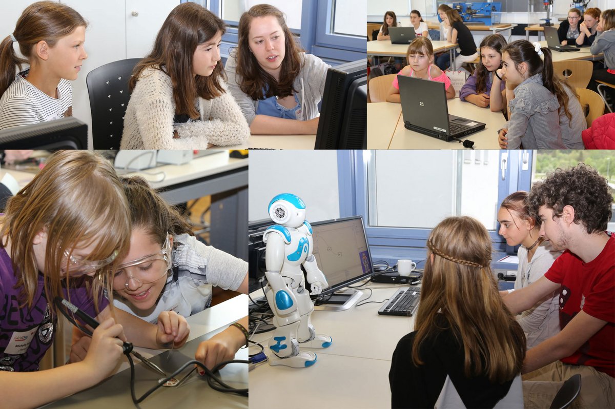 Nach der Begrüßung und einer allgemeinen Einführung ging es für die Mädchen im Alter zwischen zehn und fünfzehn Jahren in die einzelnen Workshops, für die sie sich im Vorfeld angemeldet hatten. Dort wurde gebastelt, gelötet und programmiert, wobei jede Menge Fingerspitzengefühl gefragt war. Mit Hilfe von Drähten und Kabeln wurde ein Teelicht zum Leuchten gebracht. Eine andere Gruppe programmierte ihren „Traummann“ – einen Roboter, dem sie das Laufen und Sprechen mit Hilfe bestimmter Programmierschritte beibrachten. Programmiert wurde auch in einer anderen Gruppe. Diese war allerdings in einem Land der virtuellen Ameisen unterwegs und machte sich daran die schnellste, klügste und mutigste Ameise zu programmieren und gegen andere Ameisen in einen Wettbewerb zu schicken.