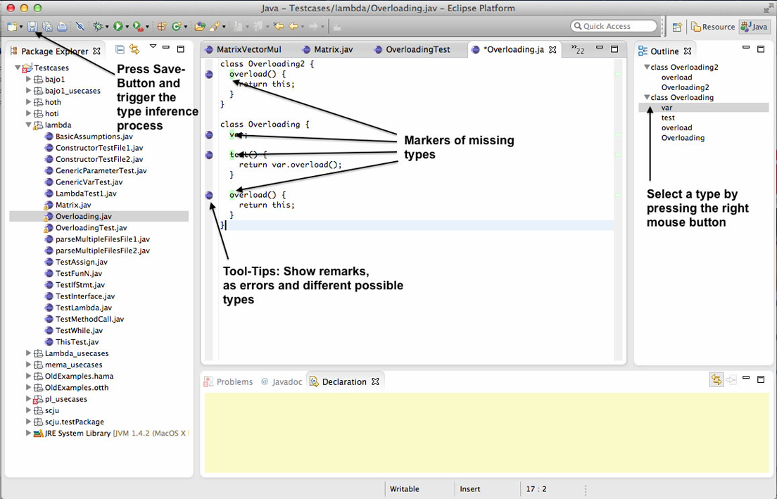 Um den Code kompilieren zu können, musste der Code immer verändert werden, insbesondere mussten die Klassenparameter angepasst werden. Dies führte dazu, dass alle Deklarationen und new-Aufrufe ebenfalls angepasst werden mussten. Durch die eigenständige Bytecode-Generierung ist nun eine durchgängige Compilation in der Umgebung möglich.