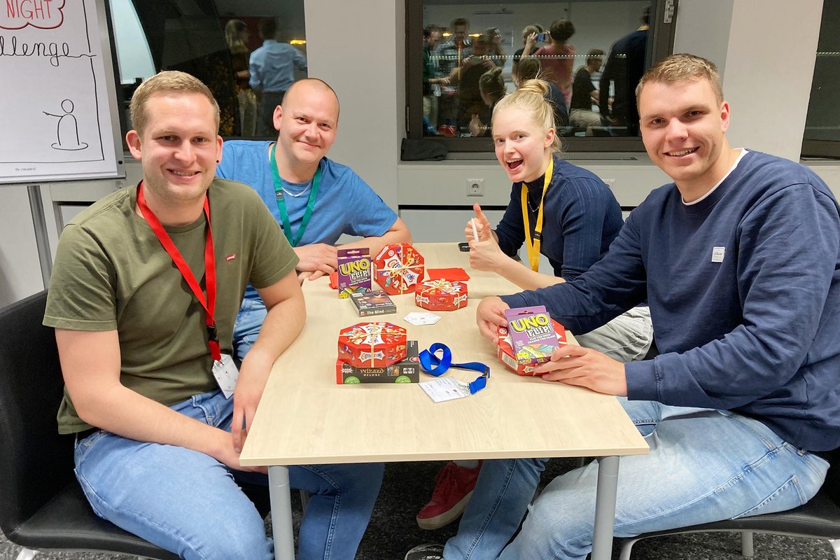 Der Final-Abend begann in lockerer Atmosphäre, bei der sich die Finalistinnen und Finalisten bei Pizza und Snacks kennenlernten. Dann ging es los: In fünf Disziplinen traten die Teams in wechselnden Konstellationen gegeneinander an. Den Auftakt bildete das Kennerspiel des Jahres 2023, “Challengers”. Hier lieferten sich die Studierenden kurze, intensive 1:1-Duelle mit wechselnden Gegnerinnen und Gegnern. Anschließend stellten die Teams ihre Fähigkeiten in einem herausfordernden Pubquiz unter Beweis, gefolgt vom Logik-Klassiker “Ubongo”. Das Bewegungsspiel “PerspActive” sorgte für noch mehr Abwechslung. Hierbei mussten die Teams gemeinsam eine Kugel durch ein Schlauch-Konstrukt leiten – eine echte Herausforderung gegen die Zeit! Den krönenden Abschluss bildete das Ratespiel “Hitster”, bei dem die Studierenden ihr Musik-Wissen unter Beweis stellten.