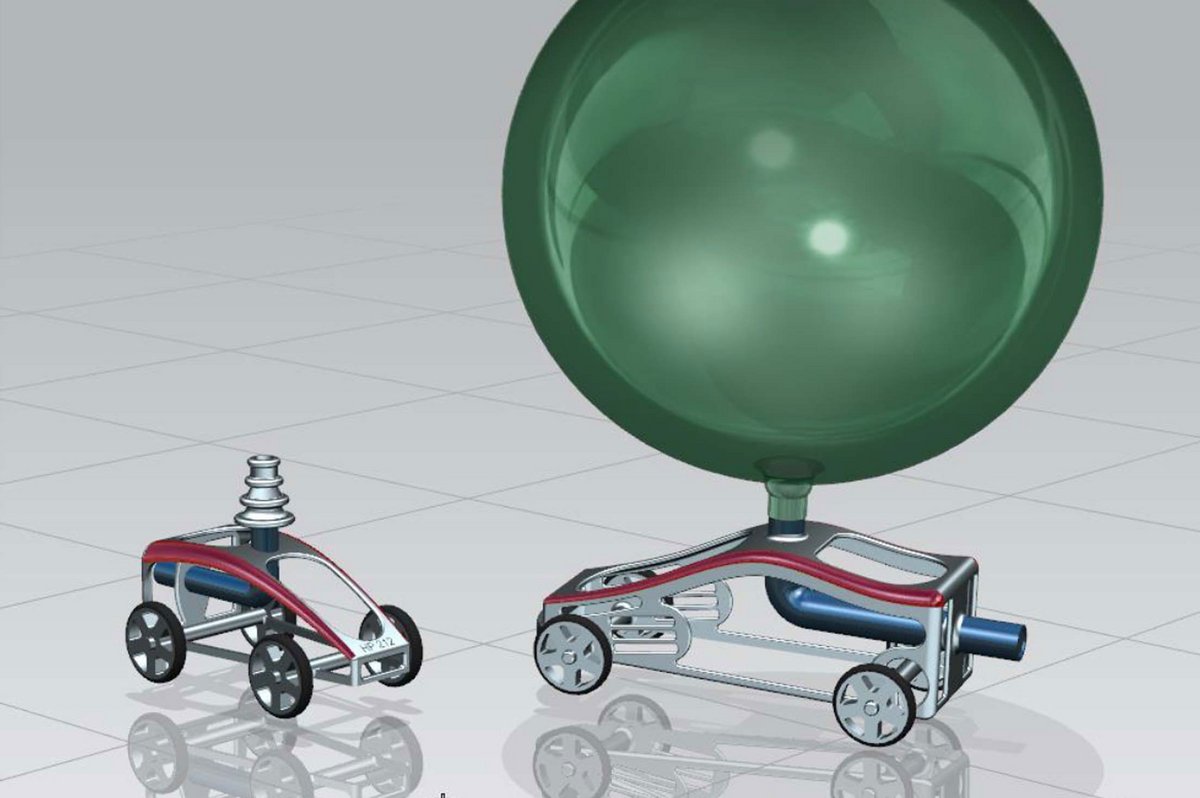 Das Ergebnis dieses Teamprojekts waren letztendlich ganz unterschiedliche „JetMobile“ – Miniaturautos, die über das Rückstoßprinzip von einen Luftballon angetrieben werden: Die Luft, die aus dem Luftballon entweicht, treibt das JetMobil an.