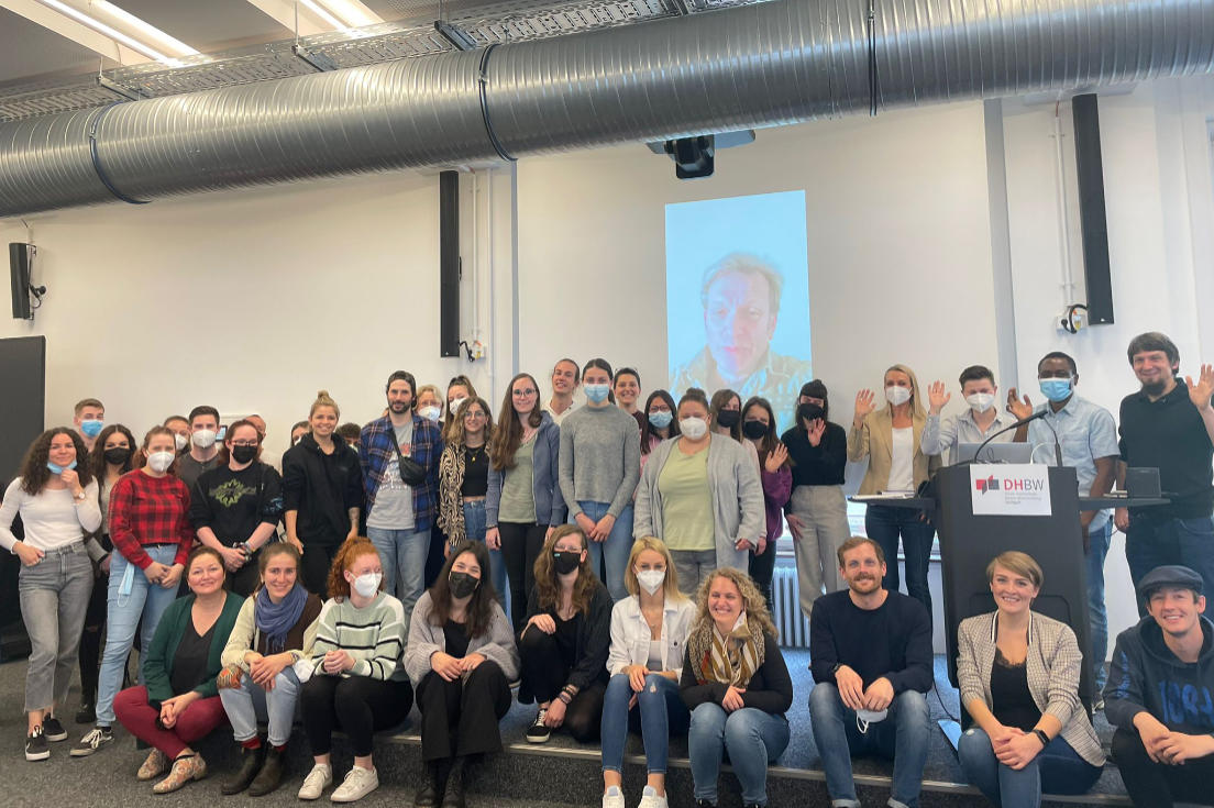 Aufgrund der aktuellen Situation in der Ukraine wurde Trabert mit einer politischen Delegation nach Kiew gerufen, um dort die humanitären Hilfen zu unterstützen. Er meldete sich jedoch zu Beginn der Veranstaltung per Videobotschaft und appellierte an die Studierenden, sich aktiv für die Menschenrechte einzusetzen. In seiner Ansprache untermauerte er die Bedeutung der Menschenrechte für Sozialarbeiter*innen. Mit seinem Aufruf zu gegenseitigem Respekt, einem verantwortungsvollen Umgang mit der Macht als Sozialarbeiter*in und dem Fokus auf die berufliche Ethik leitete er die Veranstaltung ein.