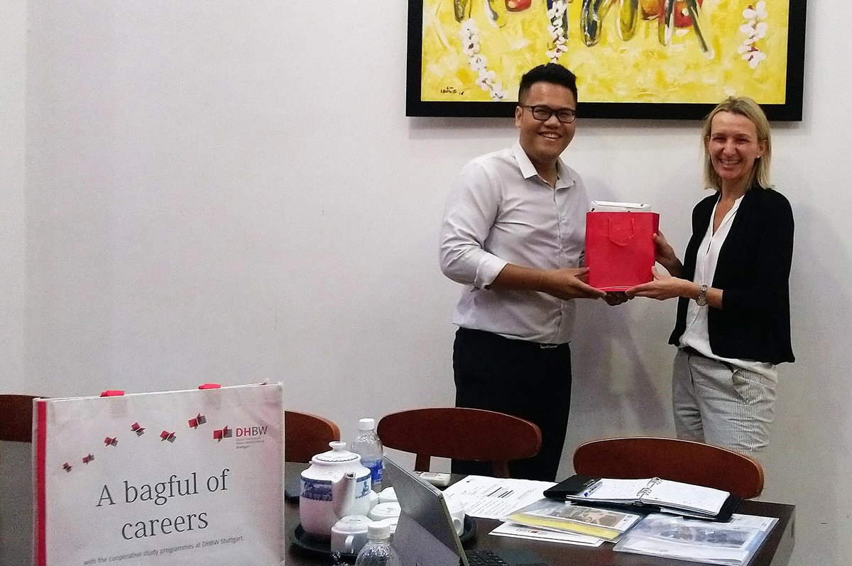 Darüber hinaus traf sich Doris Kupferschmidt mit Mr. Anh Pham, dem International Relations Officer der International School of Business an der University of Economics Ho Chi Minh City, um die Besonderheiten des dualen Studiums zu präsentieren und die Möglichkeiten eines Auslandsaufenthaltes für vietnamesische Studierenden im Rahmen des ‘International Study Programme’ der DHBW Stuttgart vorzustellen.