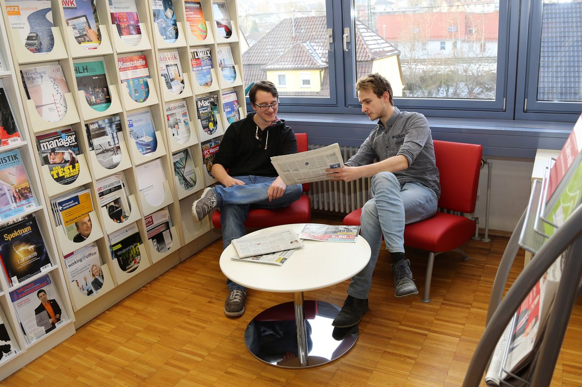Die Bibliothek am Campus Horb steht den Studierenden zum Arbeiten und Recherchieren zur Verfügung. Seit Ende Januar gibt es nun eine neue Leseecke zum Entspannen während der Freistunde, zum Vor- und Nachbereiten von Vorlesungen oder auch einfach mal, um in Ruhe die Tageszeitung oder Fachzeitschriften zu lesen.