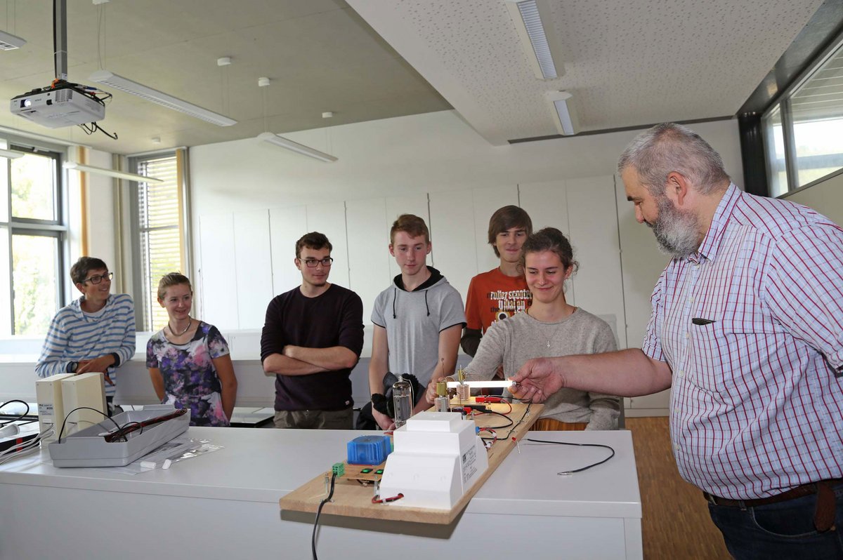 Ein Schauversuch mit der Frage „Wie schnell ist der Strom“ und eine Vorlesung zur „Technologie eines Elektroleichtfahrzeugs“ stellten nicht nur eine Abwechslung im Schulalltag dar, sondern gaben auch eine Einführung in die Grundlagen der Elektrotechnik.