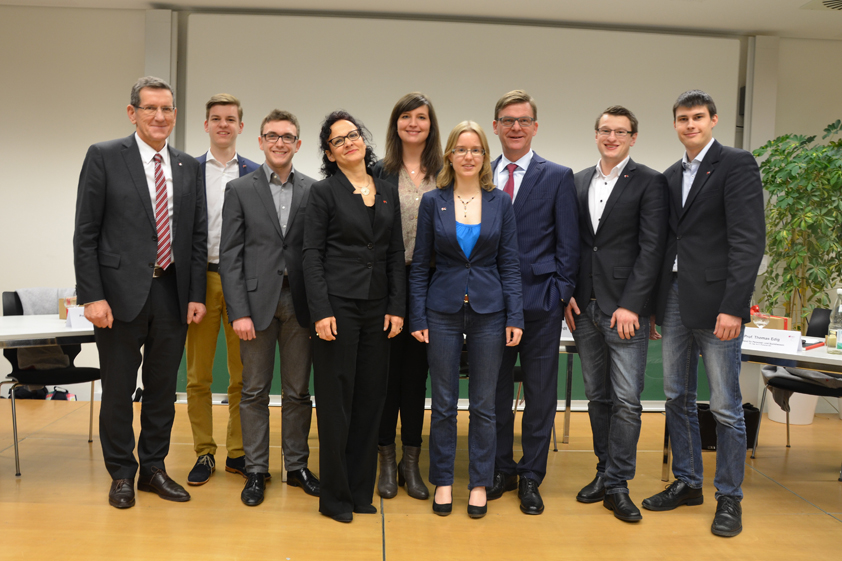 Höhepunkt der Sitzung war die Podiumsdiskussion am Freitagnachmittag über “Die DHBW und ihr Studium”. Prof. Reinhold R. Geilsdörfer (Präsident der DHBW) und Prof. Thomas Edig (Stellvertretender Vorstandsvorsitzender und Mitglied des Vorstandes für Personal- und Sozialwesen der Porsche AG sowie Honorarprofessor der DHBW) diskutierten mit studentischen Vertretern aus den Gremien der DHBW und Alumni über Masterstudiengänge, die weiteren Meilensteine in der Entwicklung der DHBW sowie über Fragen der Internationalisierung. Dazwischen hielt Prof. Bärbel Renner (Vorstandsmitglied der DHBW) einen Vortrag zur Marke DHBW.