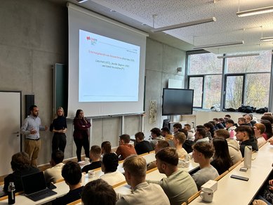 Vorstellung der Studierendenvertretung durch Lina Hortt (KFZ), Jennifer Stephan (VEM) und Mahdi Noureddine (PT)