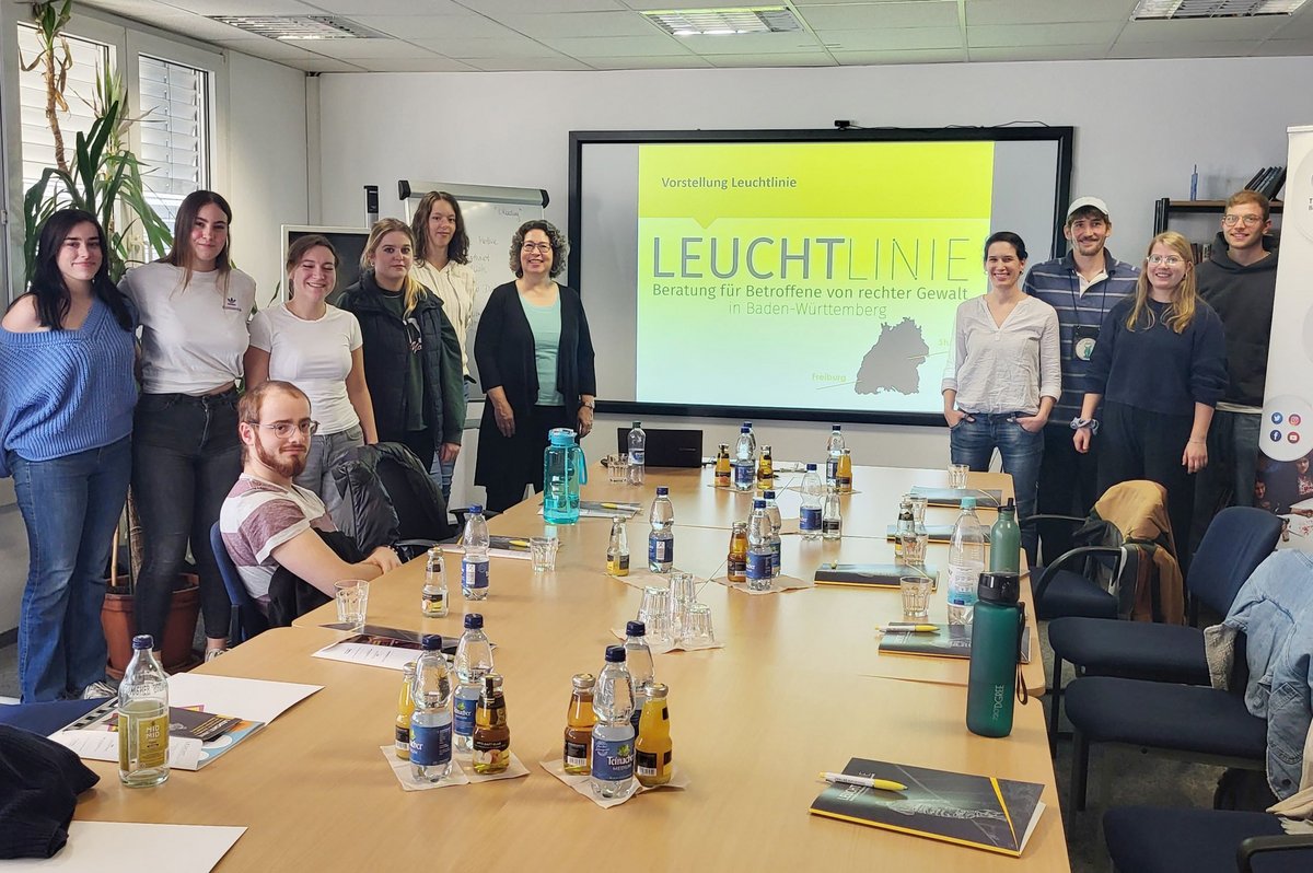 Neben der Beratung bietet LEUCHTLINIE auch Schulungen zum Thema rechte, rassistische und antisemitische Gewalt an. Die Studierenden als angehende Sozialarbeiter*innen nutzten den Besuch, um sich in den Räumen der Beratungsstelle im Stuttgarter Westen umfangreich über die Angebote sowie die Situation und Krisen der Betroffenen zu informieren und damit auch zusätzliche Angebote für ihre Klient*innen kennenzulernen.
