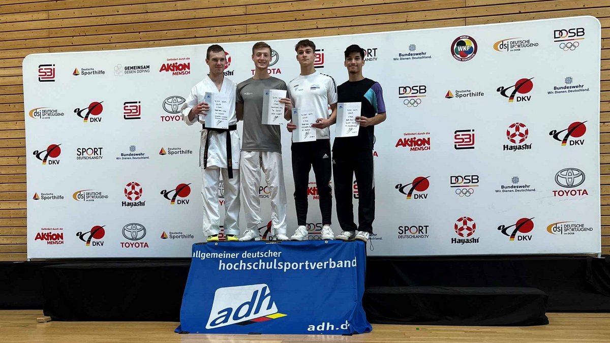 Bei den Deutschen Hochschulmeisterschaften (DHM) in den Kata- und Kumite-Wettbewerben ging es 2022 in Heidelberg um Punkte, Platzierungen und Medaillen. Auch ein Athlet der DHBW Stuttgart war vertreten. Tim Steiner von der DHBW Stuttgart startete ist in der Disziplin Kumite bis 67 Kilogramm. Als amtierender deutscher Meister der Leistungsklasse waren die Chancen vielversprechend. Mit einer großartigen Tagesform konnte er jeden Kampf zu Null gewinnen und somit den Titel des deutschen Hochschulmeisters für die DHBW Stuttgart erkämpfen.