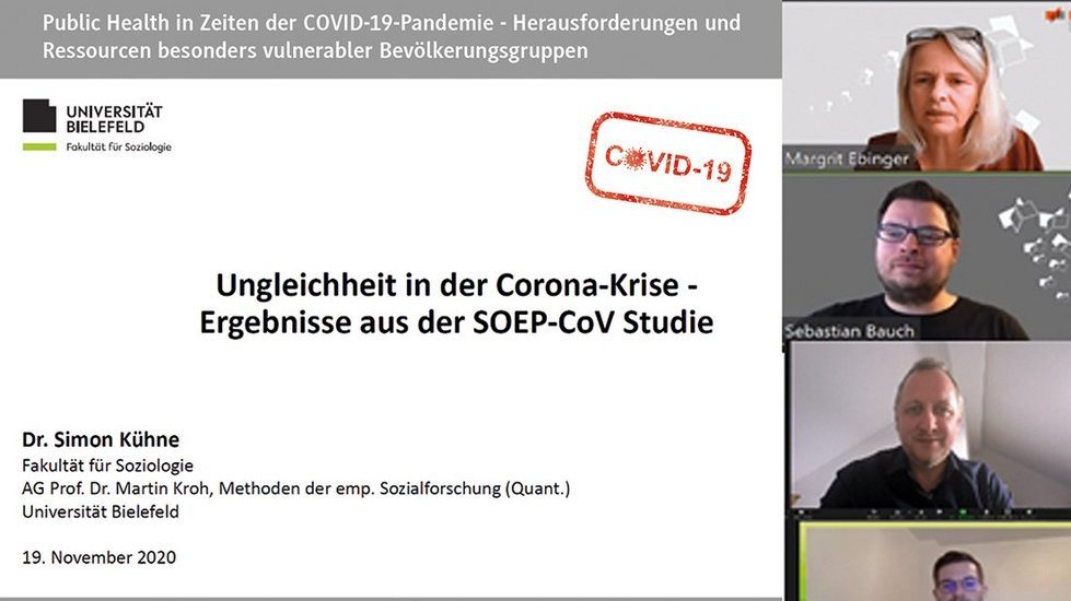 Ende November 2020 fand am Studienzentrum für Gesundheitswissenschaften und Management der DHBW Stuttgart erstmals online die Kick-off-Veranstaltung zum diesjährigen interprofessionellen Integrationsseminar statt. Studierende im 3. Studienjahr aus den Studiengängen Angewandte Hebammenwissenschaft - Hebammenkunde, Angewandte Gesundheits- und Pflegewissenschaften und BWL-Gesundheitsmanagement trafen sich im Rahmen einer virtuellen Konferenz zum lehrintegrierten Forschungsseminar mit dem Schwerpunktthema „Public Health in Zeiten der COVID-19-Pandemie – Herausforderungen und Ressourcen besonders vulnerabler Bevölkerungsgruppen“.