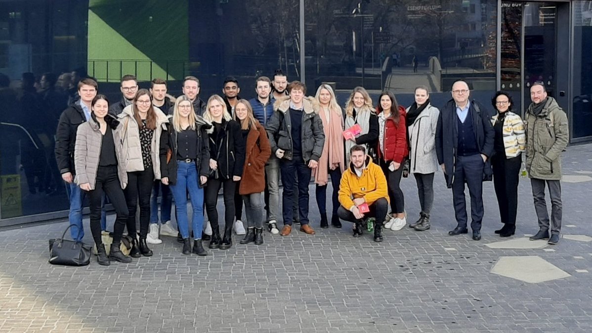 „Makro goes digital“: Im Rahmen der Vorlesung Makroökonomik, Geld & Währung sind Studierende aus drei Kursen der Studiengänge BWL-Handel und BWL-Digital Commerce Management Mitte März mit ihrer Professorin Dr. Jutta Maute nach Frankfurt gereist. Im Mittelpunkt stand die Sache mit dem Geld – und zwar dem digitalen.