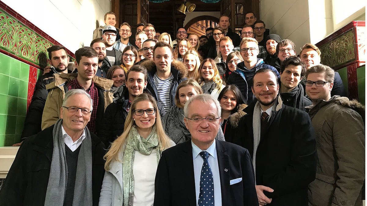 Abschließend riet Wieland den Studierenden: „Trauen Sie sich was zu, auch mit Blick auf eine Selbstständigkeit als Unternehmer und mischen Sie sich ein.“ Möglichkeiten gebe es zuhauf, ob in der Wirtschaft, bei den Innungen, der Handwerkskammer oder der Partei-Jugend. Das steigere auch die Sozialkompetenz. Denn „allein kommt man schnell vorwärts, aber weit kommt man nur gemeinsam.“