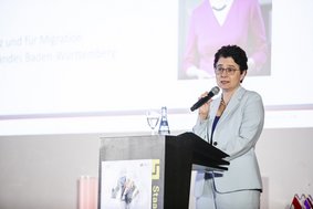 Begrüßt wurden die Gäste von Prof. Dr. Uwe C. Swoboda, Leiter des ZMM und Organisator des Mediensymposiums. Nach einem Grußwort von Prof. Dr. Anne Schweizer, Prorektorin der DHBW Stuttgart und Dekanin der Fakultät Wirtschaft wurde die Veranstaltung offiziell eröffnet durch Marion Gentges, Ministerin der Justiz und für Migration des Landes Baden-Württemberg.